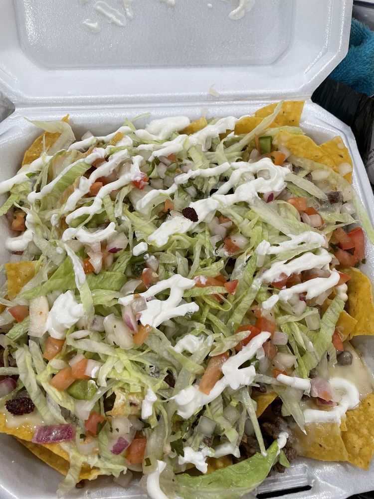 Fries loaded with your choice of meat, nacho cheese, pico de gallo, lettuce, and sour cream.
